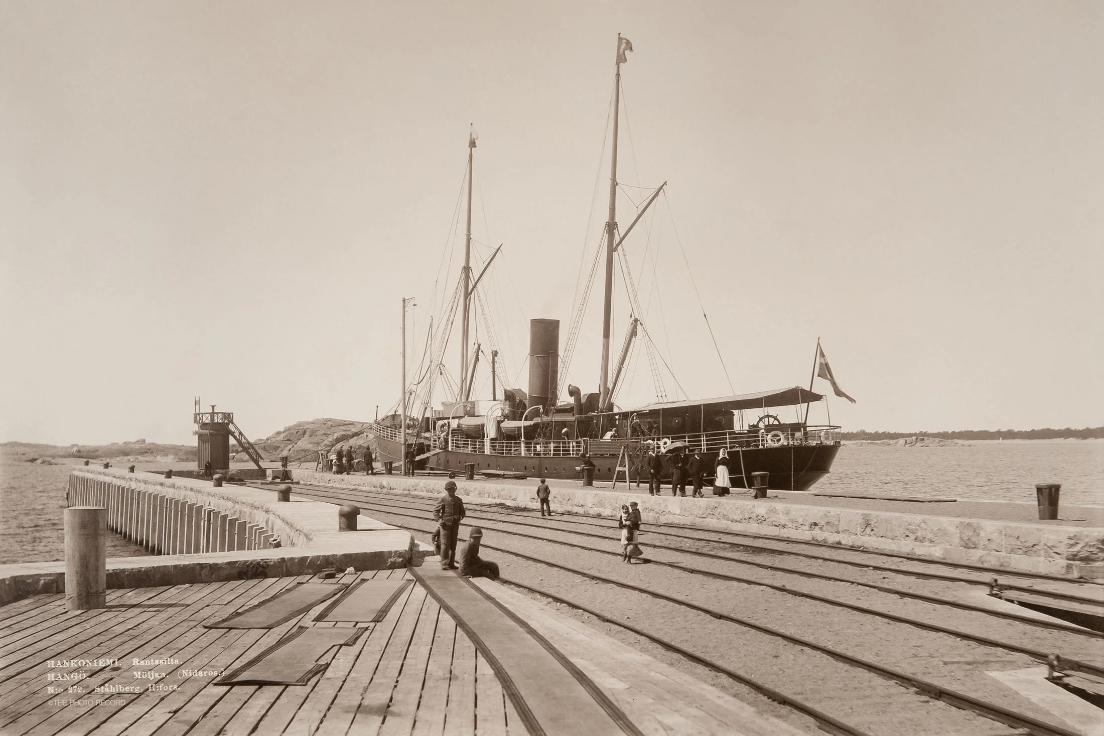 Hanko’s position on the southern coast made it one of Finland’s most important ports in the late 19th century. Passenger ships connected the town with destinations abroad, and the pier was a busy site where travellers arrived and departed. The harbour gave Hanko both an economic role as a shipping centre and a reputation as a gateway between Finland and the wider world.
